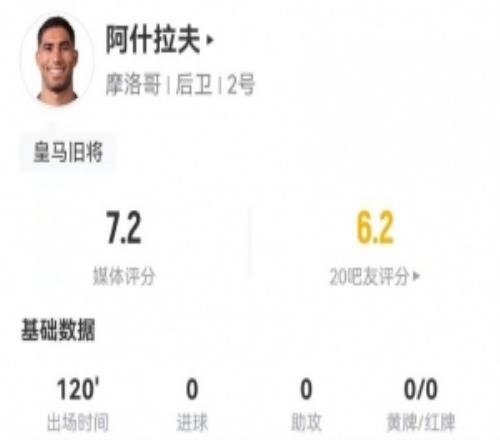 阿什拉夫本场3关键传球+丢失球权25次18对抗9成功+4解围5造犯规