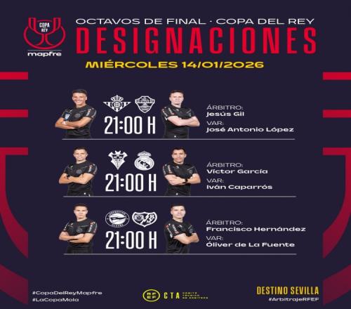 西班牙国王杯部分场次裁判安排: