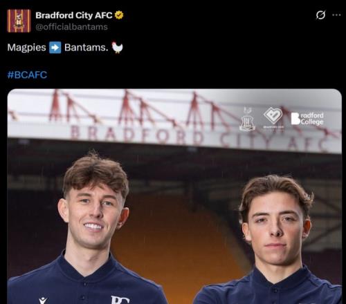 体育播报1月14日宣 英甲布拉德福德官方宣布,从纽卡租借引进2名球员。