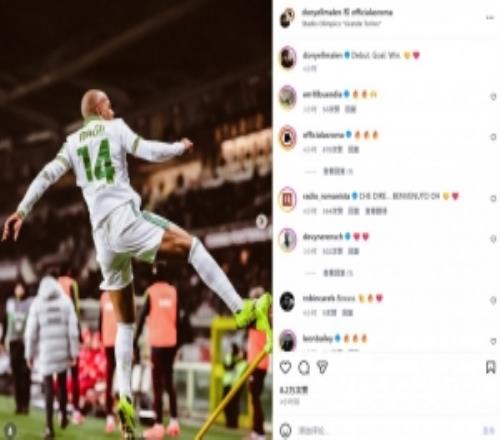 罗马首秀斩获处子球!马伦社媒晒庆祝照:首秀、进球、胜利!