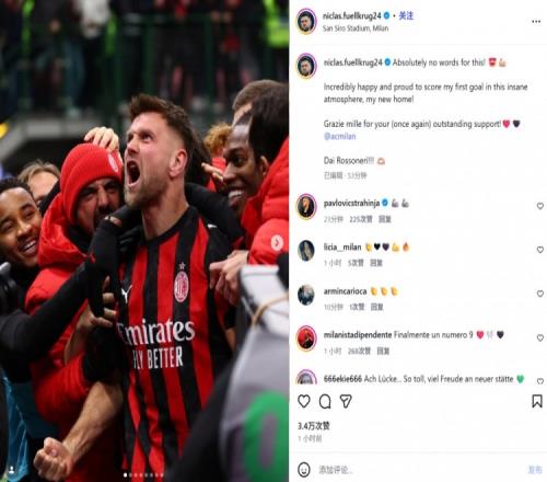 菲尔克鲁格社媒纪念米兰处子球:无比开心和自豪,我的新家!