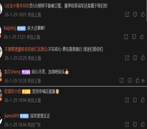 相比北京国安球迷的巨大落差心情,上海海港球迷那边则是平静许多。在俱乐部官微公告的评论区,大量球迷对海港俱乐部表达了支持和理解。有海港球迷表示,多大点事啊,扣5分照样不影响卫冕,新赛季结束后冠军还是属于我们的(下图)。不管在什么情况下都力挺球队,有这样的球迷,海港俱乐部真幸福。